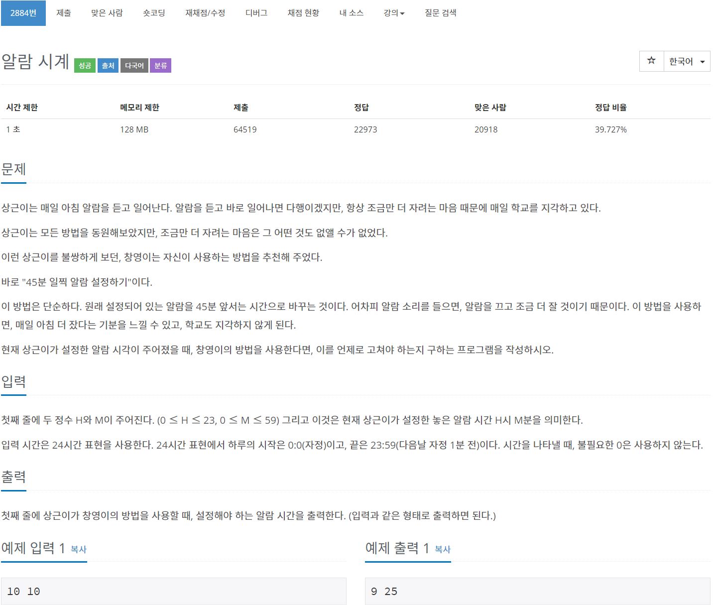 https://www.acmicpc.net/problem/2884