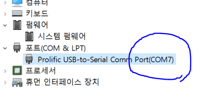 여기에서 밑에 포트 부분을 확인하면 몇번째 보트에 꼽은지 확인 할 수 있다. 내경우엔 7번